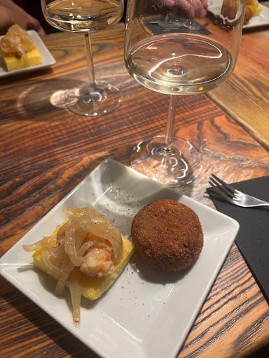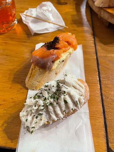 Savor classic cicchetti (Venetian tapas) paired with a glass of Prosecco col fondo or regional wine 🥂